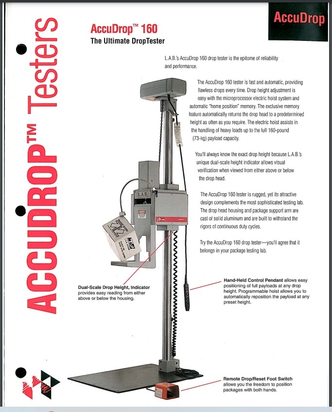 USED, LAB AccuDrop 160, Free-Fall Package Drop Tester.
